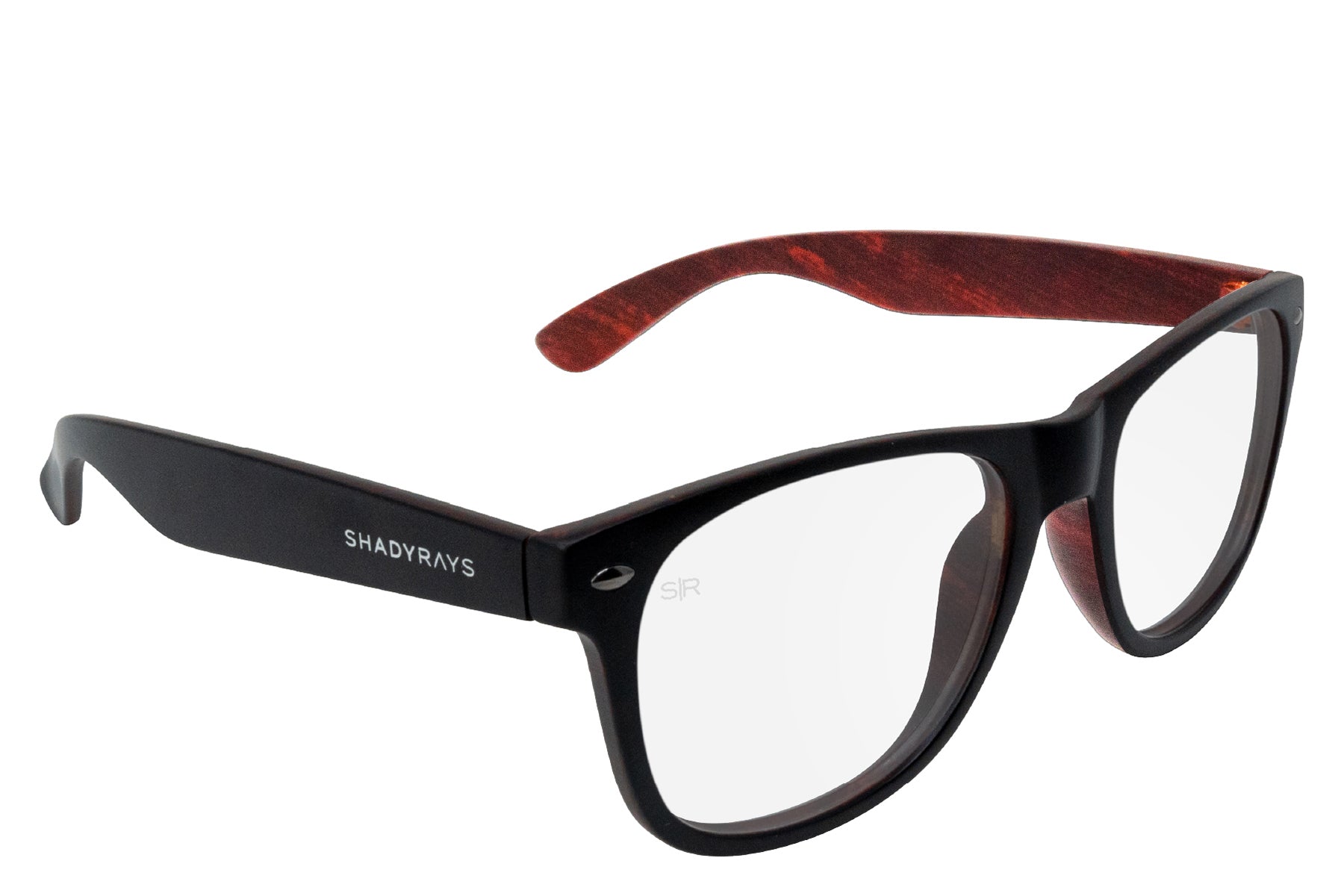 Smooth Matte black exterior accented with a wood-grain finish on the interior offering a sleek two tone style in our best selling Classic frame. Complete with prescription lenses custom-made in our US-based optical lab.?Includes hard case.